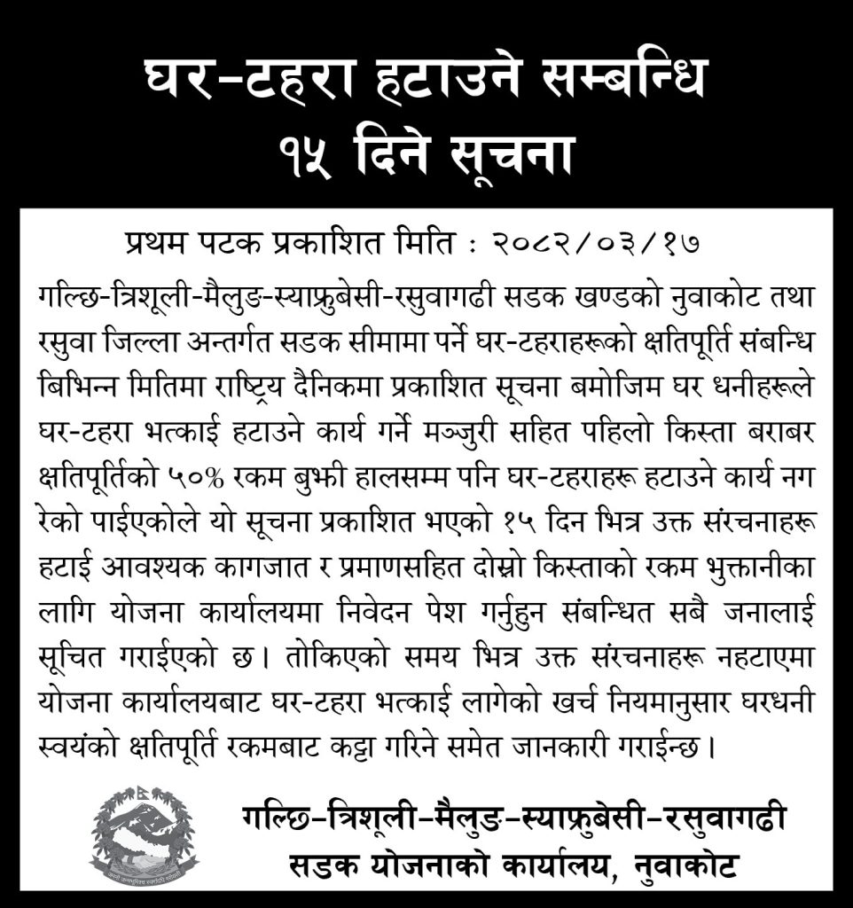 राप्रपा नुवाकोटका अध्यक्ष कुलबहादुर खड्गीले बुधबार प्रमुख जिल्ला अधिकारी मार्फत मागपत्र बुझाएका हुन् । मागपत्रमा राजसंस्था पुनःस्थापना, प्रदेश खारेजी, हिन्दुराज्य पुनःस्थापना लगायतका विषयहरू समेटिएका छन् ।